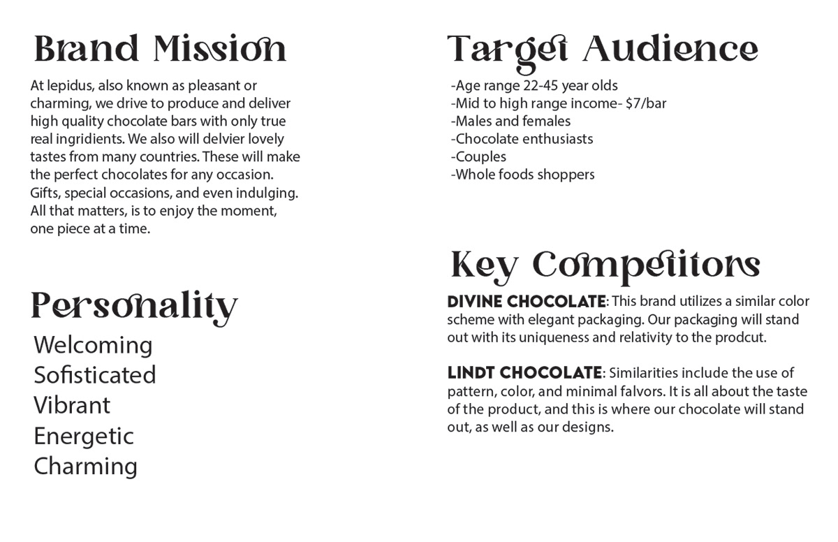 I created a chocolate brand with three flavors. I wanted to have a simple and classic feel, design wise.